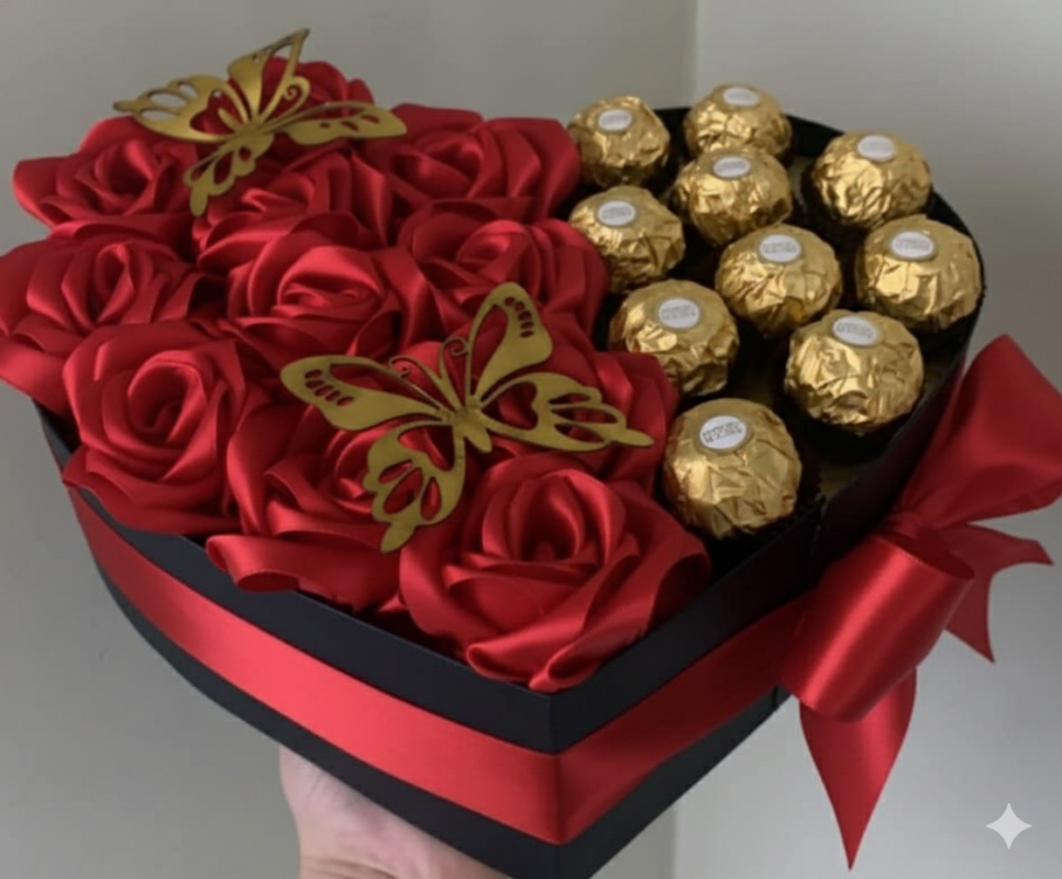 El detalle inolvidable para este 14 de febrero. Sorprende con la combinación perfecta de lujo y romanticismo. Nuestra caja artesanal en forma de corazón incluye rosas eternas confeccionadas en listón satinado de alta calidad, diseñadas para durar para siempre como símbolo de tu amor.